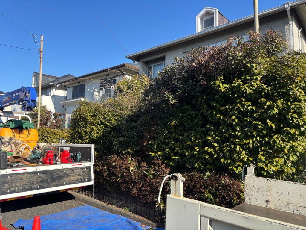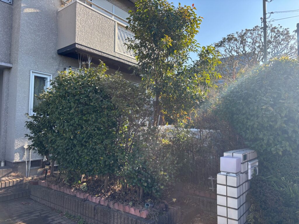 生垣、低木、高木が見事にぼっさりとなってしまい
